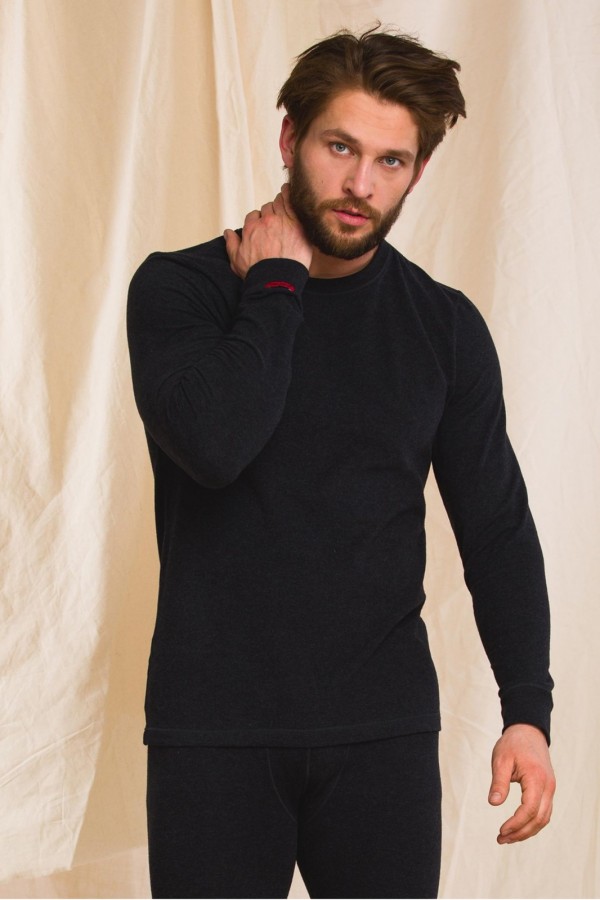 Bluza pentru barbati realizata din tesatura din bumbac pieptanat Hot Touch, moale pe ambele parti si placuta la atingere, cu proprietati termoizolante. Bluza este calduroasa, are maneca lunga si decolteu rotund.