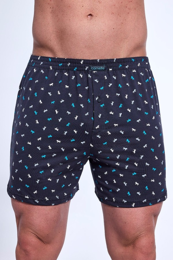 Boxeri pentru barbati realizati din bumbac de inalta calitate, conceputi pentru barbatii care pretuiesc confortul si comoditatea. Boxerii au croiala lejera, talie elastica confortabila, prezinta model deosebit cu armasari si se inchid in zona slitului cu un nasture.