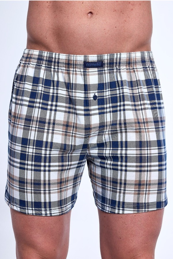 Boxeri pentru barbati realizati din bumbac de inalta calitate, conceputi pentru barbatii care pretuiesc confortul si comoditatea. Boxerii au croiala lejera, talie elastica confortabila, prezinta model deosebit cu carouri si se inchid in zona slitului cu un nasture.