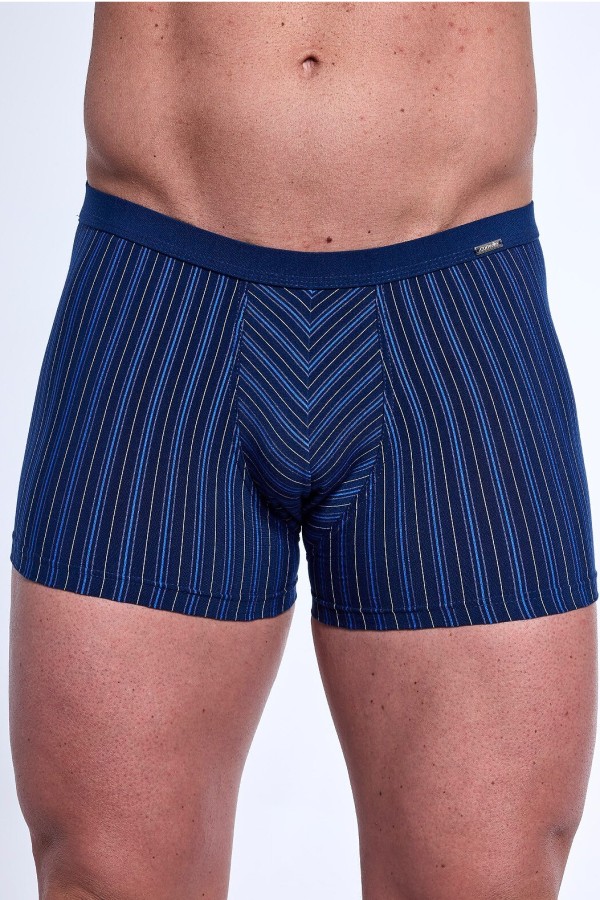 Boxeri pentru barbati din gama "Infinity" realizati din modal (vascoza de inalta calitate) si adaos de fibre elastice. Boxerii au talie elastica in nuanta contrastanta si cusaturi plate pentru un plus de confort. Prezinta model deosebit cu dungi colorate.