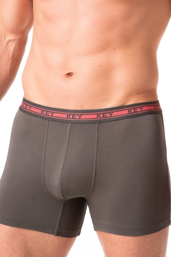 Boxeri pentru barbati realizati din bambus de inalta calitate, cu proprietati antialergice. Boxerii sunt uni si au talie elastica confortabila, decorata cu dungi si cu inscriptia repetitiva "KEY".