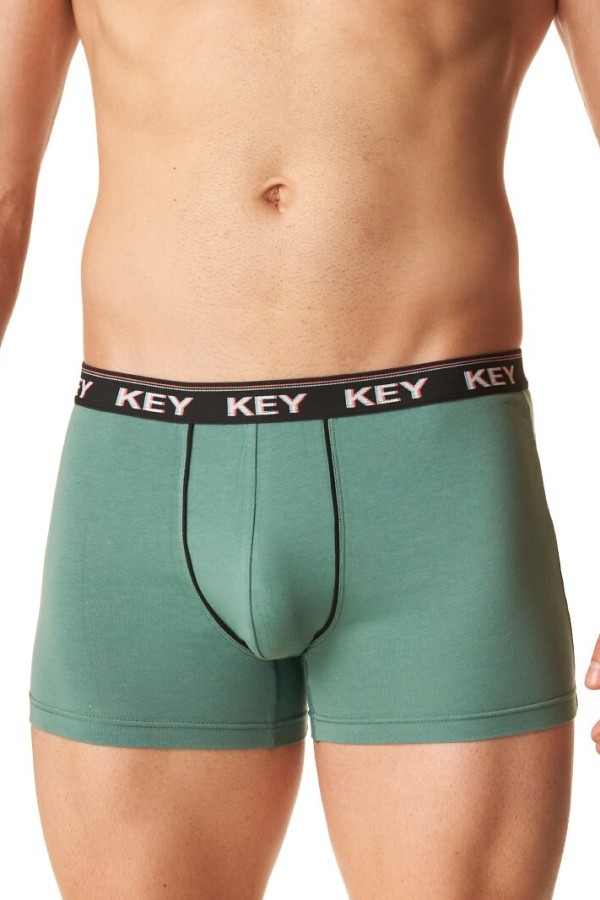 Boxeri pentru barbati realizati din bumbac de inalta calitate, cu proprietati antialergice. Boxerii sunt infrumusetati in partile laterale cu cusaturi decorative in nuanta contrastanta si au talie elastica confortabila neagra, decorata cu doua dungi subtiri colorate si cu inscriptia repetitiva "KEY".