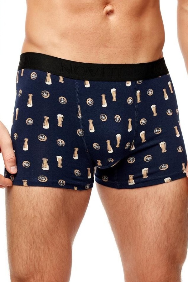 Boxeri pentru barbati confectionati din bumbac de calitate superioara, cu model deosebit, ce confera un aspect modern si dinamic. Materialul este moale, elastic si placut la purtare, adaptandu-se perfect formei corpului. Talia este prevazuta cu o banda lata si comoda, uni, decorata cu inscriptia NOVITI usor iesita in relief si care asigura fixare ferma fara a provoca disconfort. Croiala este bine structurata si usor mulata pe corp, ideala pentru confortul zilnic.