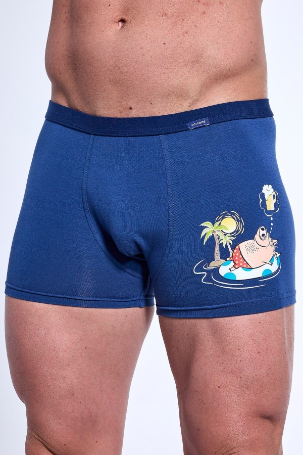 Boxeri pentru barbati din gama "Tattoo" realizati din bumbac de inalta calitate si elastan, conceputi pentru barbatii care pretuiesc confortul si comoditatea. Boxerii au talie elastica confortabila in nuanta contrastanta si sunt infrumusetati intr-o parte laterala cu imprimeu haios cu un porc in concediu care viseaza bere. O propunere excelenta pentru a face un cadou plin de personalitate si stil iubitului dumneavoastra.