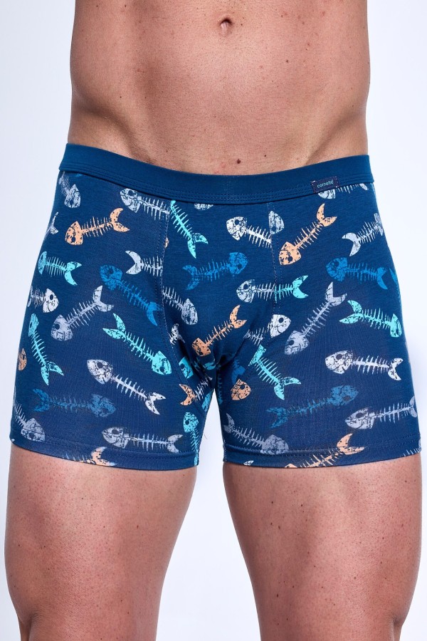 Boxeri pentru barbati din gama "Tattoo" realizati din bumbac de inalta calitate si elastan, conceputi pentru barbatii care pretuiesc confortul si comoditatea. Boxerii au talie elastica confortabila si prezinta model deosebit cu oase de peste. O propunere excelenta pentru a face un cadou plin de personalitate si stil iubitului dumneavoastra.