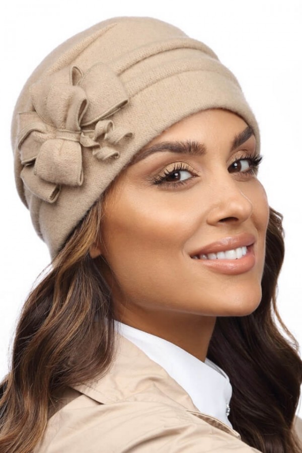 Caciula de dama WL10944 reprezinta un accesoriu vestimentar sofisticat si versatil, ideal pentru femeile care doresc sa adauge un plus de eleganta garderobei lor, indiferent de conditiile meteo. Se remarca prin accesorizarea cu accente romantice si prin atentia la detalii. Fundita stilizata din tricot adauga o nota feminina si delicata, in timp ce mici cusaturi decorative raspandite pe intreaga suprafata a calotei, completeaza perfect aspectul rafinat al acesteia.