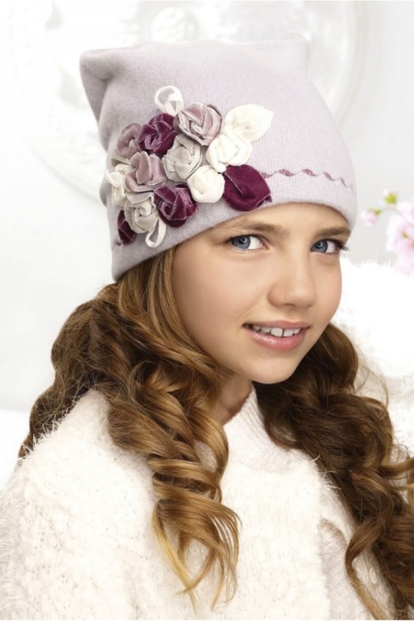 Caciula pentru fetite WL10680 are un design modern si inedit ce va fi cu siguranta pe gustul fetitelor jucause. Se evidentiaza prin accesorizare exceptionala iar croiala clasica permite caciulii sa ia forma capului, acoperind bine urechile si fruntea. Decorul de inspiratie florala aplicat in lateral sub forma unui buchet bogat de roze imprima o nota eleganta modelului. Bobocii de trandafir ce alcatuiesc buchetul sunt stilizati din catifea in culori pastelate. Partea inferioara a caciulii este accentuata cu o cusatura chic ce intregeste ansamblul decorativ.