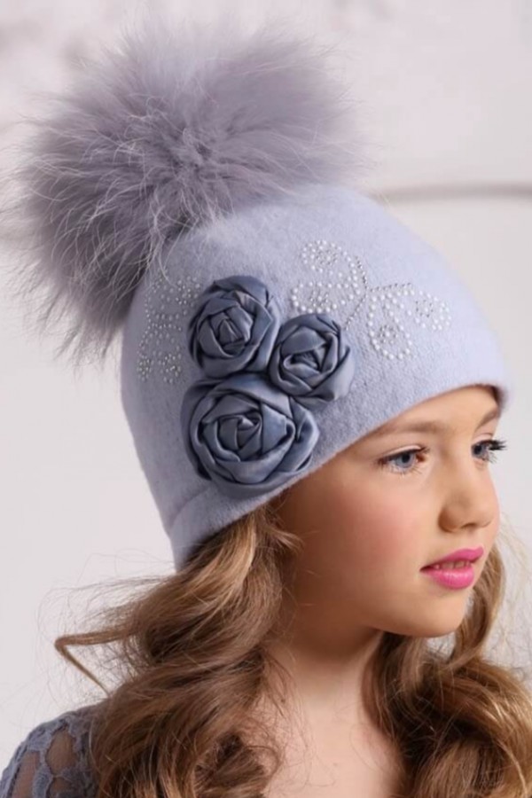 Caciula pentru fetite cu pompon din blanita.