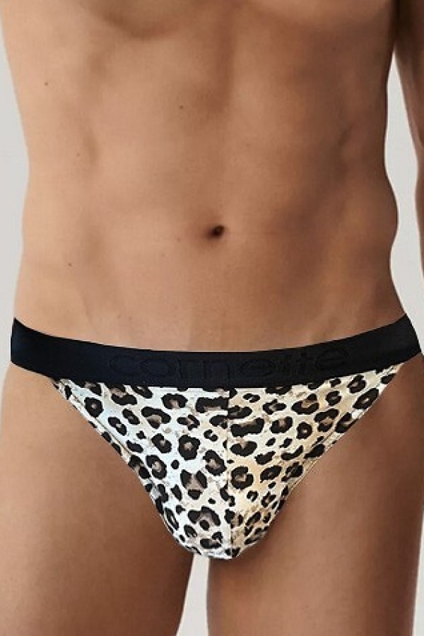 Chilot clasic pentru barbati realizat din bumbac de inalta calitate si adaos de fibre elastice. Chilotul are talie elastica confortabila in nuanta contrastanta infrumusetata cu inscriptia usor iesita in relief "Cornette", este mai subtire in partile laterale si prezinta model animal print.
