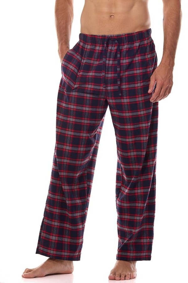 Pantalon de pijama pentru barbati realizat din flanel moale din bumbac pentru a va asigura o senzatie de caldura si confort. Pantalonul este lung, are talie elastica confortabila, prezinta model deosebit cu carouri, este prevazut cu buzunare laterale si se ajusteaza in talie cu ajutorul unui snur.