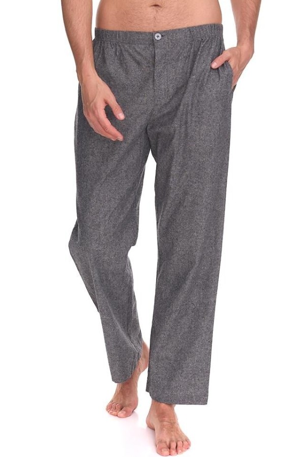 Pantalon de pijama pentru barbati realizat din bumbac melanj de inalta calitate. Pantalonul este lung, prevazut cu buzunare laterale, are slit ce se fixeaza cu ajutorul unui nasture si talie elastica confortabila.