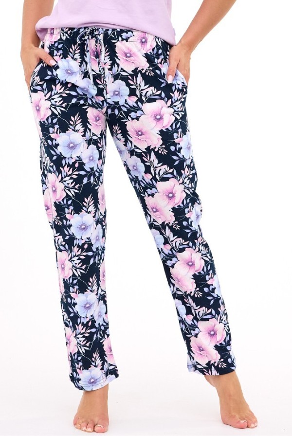 Pantalon de pijama pentru femei realizat din bumbac de inalta calitate. Pantalonul este lung, are talie elastica confortabila a carei circumferinta se poate ajusta cu ajutorul unui siret, prezinta model floral deosebit si este prevazut cu buzunare la nivelul soldurilor.