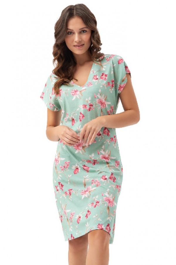 Rochie de noapte de dama realizata din bumbac de inalta calitate. Rochia are maneca scurta, decolteu in V si prezinta model floral deosebit.