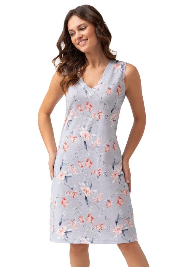 Rochie de noapte de dama realizata din bumbac de inalta calitate. Rochia este fara maneci, are decolteu in V si prezinta model floral deosebit.