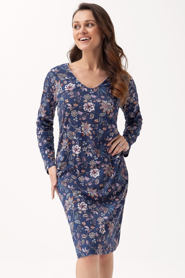 Rochie de noapte de dama realizata din bumbac de inalta calitate. Rochia are maneca lunga, decolteu in V si prezinta model deosebit.