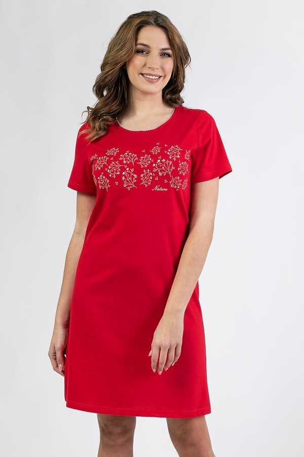 Rochie de noapte realizata din bumbac de inalta calitate. Rochia are maneca scurta, decolteu semirotund si este infrumusetata in zona bustului cu un imprimeu deosebit, precum si cu inscriptia "Nature".